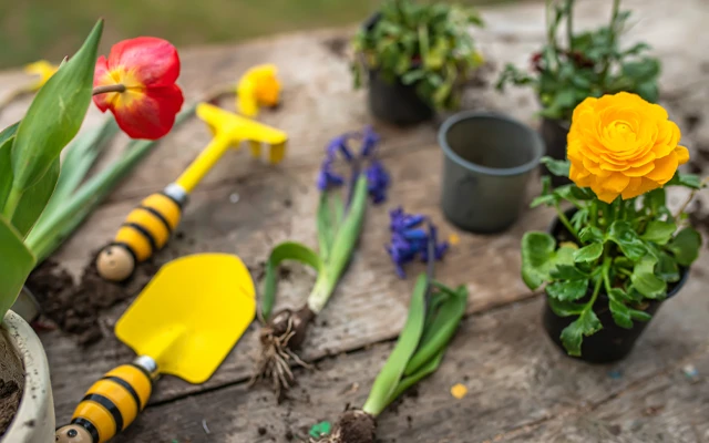 LANNIU Garden Tool Set, 9 Piece Stainless Steel Heavy Duty Gardening Tool Set, with Non-Slip Rubber Grip, Storage Pocket, Ideal Garden Tool Kit Gift for Women/Parent