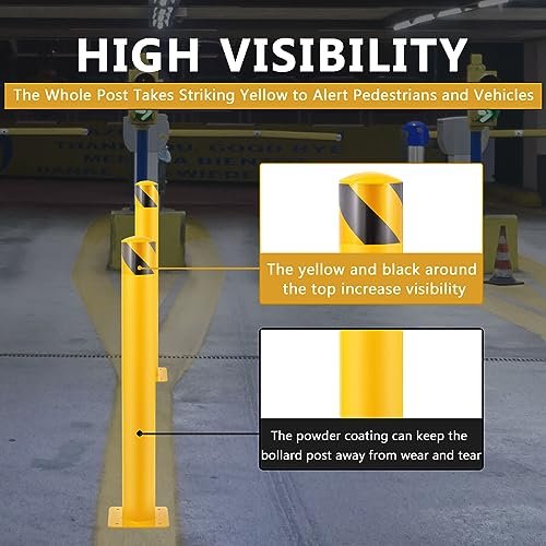 - [Special powder coating] The powder coating can protect the parking pile from oxidation, ultraviolet radiation, discoloration or corrosion, and can last as new even outdoors or in the basement. Black and yellow tops increase visibility and can be clearly seen at night