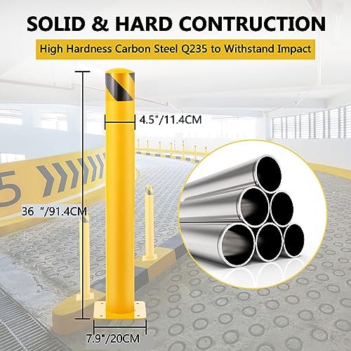 36” x 4.5 ” Safety Bollard Post Reflective Yellow Pipe Bollards Steel Parking Barrier Nocturnal Lifting Ground Barrier With 4 Free Anchor Bolts, Heavy Duty Powder Coated Safety Parking Barrier Post 11Ga(3MM) Base-8×8”