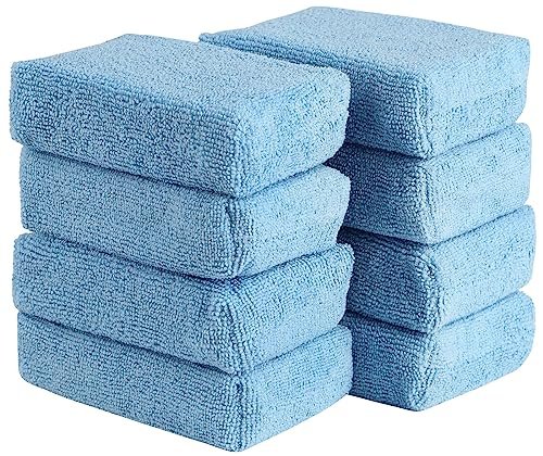 AIDEA Microfiber Applicator Pads – 8 Pack, Premium Microfiber Sponge, Car Wash Sponge and Cleaning Pads, Perfect for Effortless Wax, Sealant, and Conditioner Application – Blue
