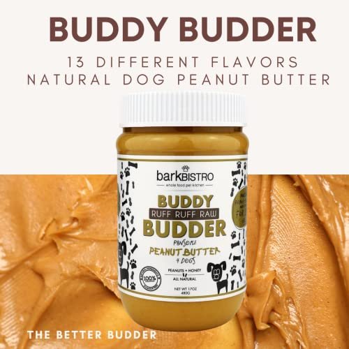 BUDDY BUDDER Bark Bistro Company, Ruff Ruff Raw, 100% Natural Dog Peanut Butter, Healthy Peanut Butter Dog Treats, Dog Enrichment, Dog Pill Pocket, Made in USA, (17 oz Jars)