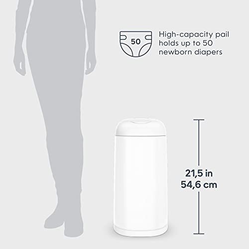- LASTING VALUE: This compact diaper pail can hold up to 50 newborn-sized diapers! The pail’s composition allows easy cleaning without worrying about rust.