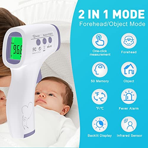 Digital Thermometer for Adults and Kids, No Touch Forehead Thermometer for Baby, 2 in 1 Body Surface Mode Infrared Thermometer with Fever Alarm and Instant Accuracy Readings