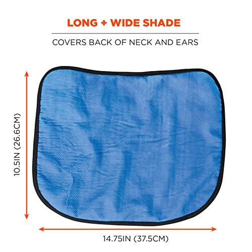 The Chill-Its 6670CT Evaporative Cooling Hard Hat Neck Shade straps into hard hats to deliver four hours of cooling relief while also shading the neck from sun damage. The lightweight shade features advanced PVA cooling technology for instant cooling without bulk or slime, with a wide panel that extends down for complete back-of-neck-coverage. This hard hat neck shade fits most hard hats and safety helmets, easily and securely attaching to the suspension with two hook & loop straps. Heat-related illness continuously ranks among the top causes of worksite accidents and fatalities. Evaporative cooling technologies such as PVA (polyvinyl alcohol) are a simple, effective and comfortable solution for heat stress prevention. Similar to how sweat cools the body, evaporative technologies use an external water source to draw heat away—helping to regulate body temperature while providing cool relief.