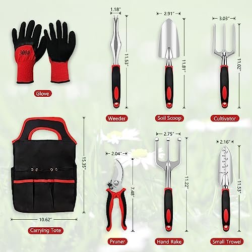 Gardening Tool Set, 8 Pieces Aluminum Heavy Duty Gardening Kit with Ergonomic Handles, Gardening Bag, Ideal Gardening Tool Set – Gifts for Men and Women