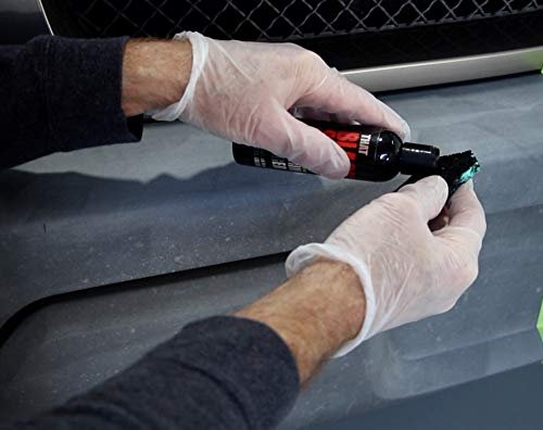 Details: How To Apply: 1. SHAKE WELL for 30 seconds. 2. Clean area thoroughly to remove any silicone’s, grease, or contaminants. We use rubbing alcohol. 3. Mask with tape if required to keep off adjoining area’s. 4. Apply 2-3 thin coats with a sponge or lint free towel/cloth until desired coverage is achieved. 5. Let air dry completely between coats. How Much do I need? A. A little goes a LONG way. 1. 4 oz. bottle contains 3.25 Fl Oz, Enough to do 1-2 Normal Vehicles Trim 2. 8 oz. bottle contains 7 Fl Oz. Enough to do 2-3 Normal Vehicles or about 2 trucks trim. 3. 16 oz. bottle contains 15 Fl Oz. Enough to do 3-8 Normal Vehicles or about 2-3 trucks trim. Professional Car Lot/Detailer Size. Wear gloves, will stain your hands. Do not apply if the surface is too hot or in direct sun as the product will dry to quickly. Dries OEM Matt, if you want it shiny you can apply any product you like after 7 days.How To Apply:SHAKE WELL for 30 seconds.Clean area thoroughly to remove any silicone’s, grease, or contaminants. We use rubbing alcohol.Mask with tape if required to keep off adjoining area’s.Apply 2-3 thin coats with a sponge or lint free towel/cloth until desired coverage is achieved.Let air dry completely between coats.How Much do I need?A little goes a LONG way.4 oz. bottle contains 3.25 Fl Oz, Enough to do 1-2 Normal Vehicles Trim8 oz. bottle contains 7 Fl Oz. Enough to do 2-3 Normal Vehicles or about 2 trucks trim.16 oz. bottle contains 15 Fl Oz. Enough to do 3-8 Normal Vehicles or about 2-3 trucks trim. Professional Car Lot/Detailer Size.Wear gloves, will stain your hands. Do not apply if the surface is too hot or in direct sun as the product will dry to quickly.Dries OEM Matt finish, if you want it satin or shiny you can apply any product you like after 7 days.